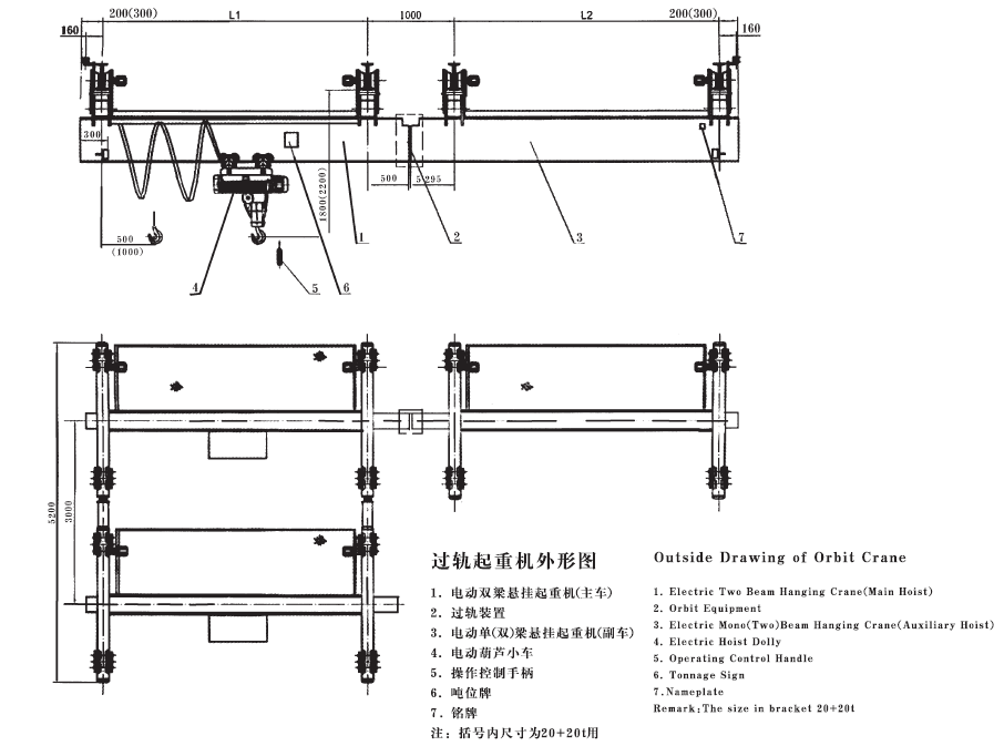 3、 該產(chǎn)品屬于組合設(shè)備,由電動(dòng)葫蘆小車、電動(dòng)雙梁懸掛起重機(jī)(主車)、(手)電動(dòng)單(雙)梁懸掛起重機(jī)(副車)和過軌裝置組成。