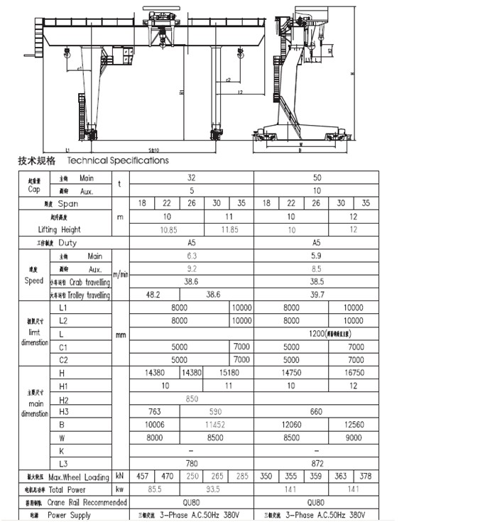 二、產(chǎn)品簡圖與技術(shù)規(guī)格(32/5t-50/10t)